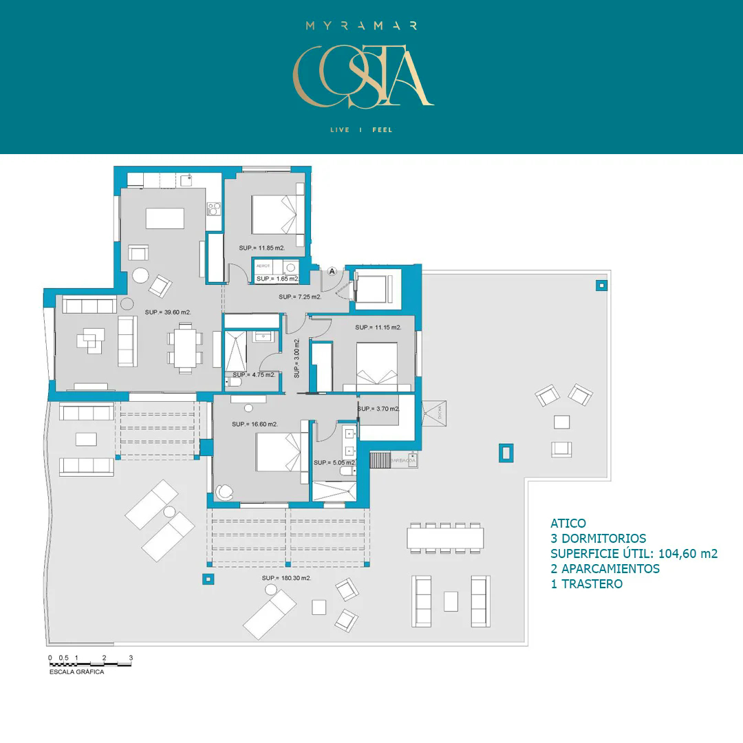 Myramar Costa is a project with a total of 55 new build apartments in Mijas from 1 to 3 bedrooms, with different orientations, distributed in 3 buildings.